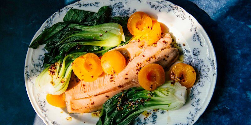 Con esta receta de salmón con bok choy y albaricoques escalfados, no solo disfrutarás de un platillo delicioso, sino que también estarás alimentando tu cuerpo con ingredientes saludables y nutritivos. ¡Buen provecho!